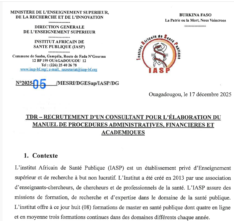 Recrutement d’un consultant pour l’élaboration du manul de procédures administratives financières et académiques Télécharger ici IASP Previous post Certificat en suivi-évaluation des projets et programmes